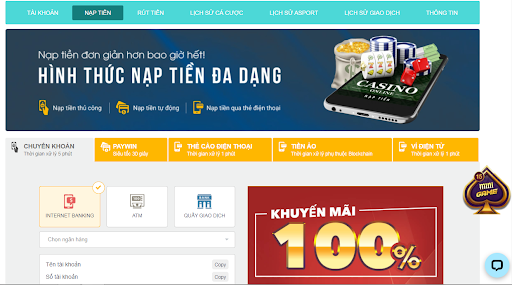 Bước 4: Lấy thông tin tài khoản của nhà cái và tiến hành gửi tiền. Sau khi chuyển thành công, bạn chỉ cần cung cấp mã giao dịch rồi bấm “Xác nhận giao dịch” là hoàn tất. Người chơi chỉ cần đợi 1 – 2 phút là hệ thống sẽ kiểm tra và xử lý. Bạn có thể kiểm tra tiến trình này tại mục “Lịch sử giao dịch”.